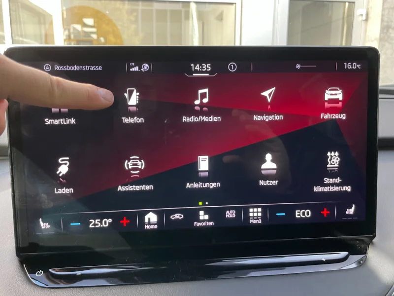 Fahre das Auto in Ruhe. Achte auf Details. Der ENYAQ wirkt auf den ersten Metern oft unspektakulär, zeigt seine Stärken aber im Verlauf der Fahrt.