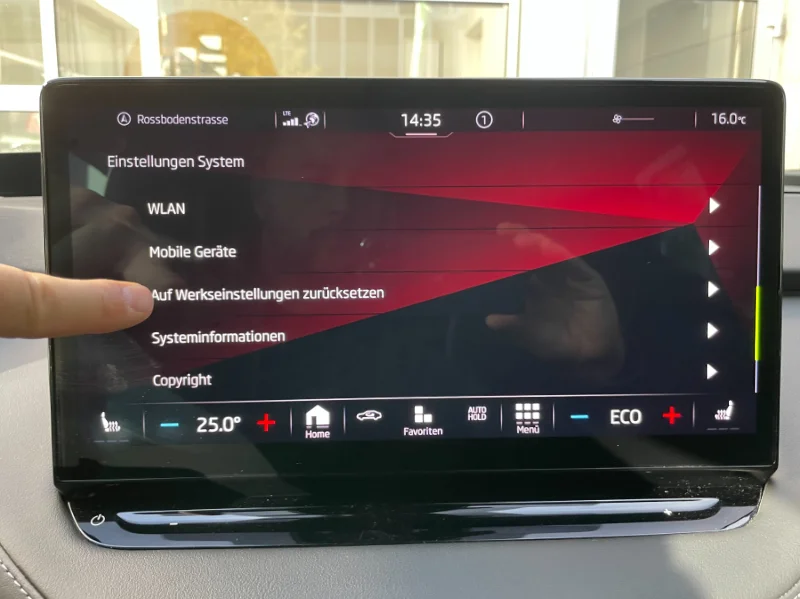 - Teste Navigation, Radiobedienung, Sprachsteuerung, Kamera und Klimasteuerung.